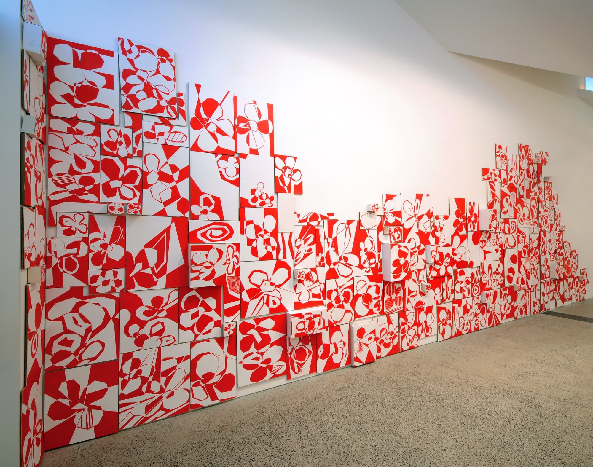 Over 1500 artworks have been acquired by Heide since the turn of the century, from rare collages by Sidney Nolan produced in the 1930s to a monumental installation by contemporary artist Kathy Temin. Becoming part of the museum’s collection largely through gift, bequest and donated funds, they demonstrate the generosity of donors and a positive response to Heide’s integration of modernist and contemporary art. Some acquisitions have entered the collection in response to recent Heide exhibitions, while others have been inspired by Heide’s history and environment, as well as its renewed contemporary focus, including Siri Hayes’s and Kim Donaldson’s works, a site-specific painting by Mirka Mora and Callum Morton’s sculpture One to One.