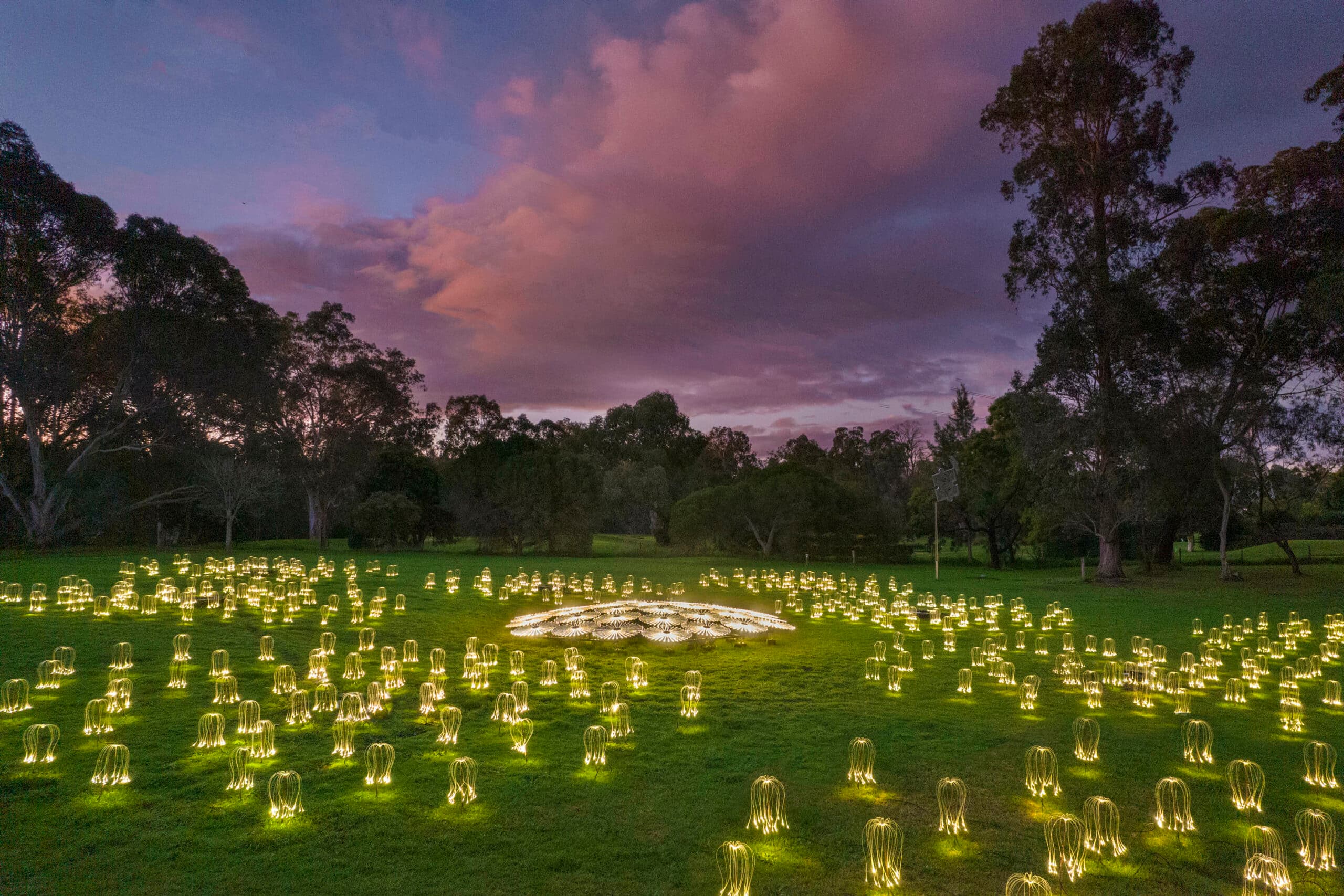 Light is an essential element of the remarkable practice of British artist Bruce Munro, best known for his immersive, large-scale installations inspired largely by his interest in shared human experience. In 2022 at Heide, Munro will present his first museum exhibition in Australia, combining spectacular indoor and outdoor experiential artworks with intimate story-pieces. Bruce Munro: From Sunrise Road reveals the depth of the artist’s practice and the breadth of his sources, from the personal and literary to the philosophical and spiritual. At once contemplative, playful and thought-provoking, the exhibition will offer an unforgettable interactive experience that engages the senses and enriches the mind.