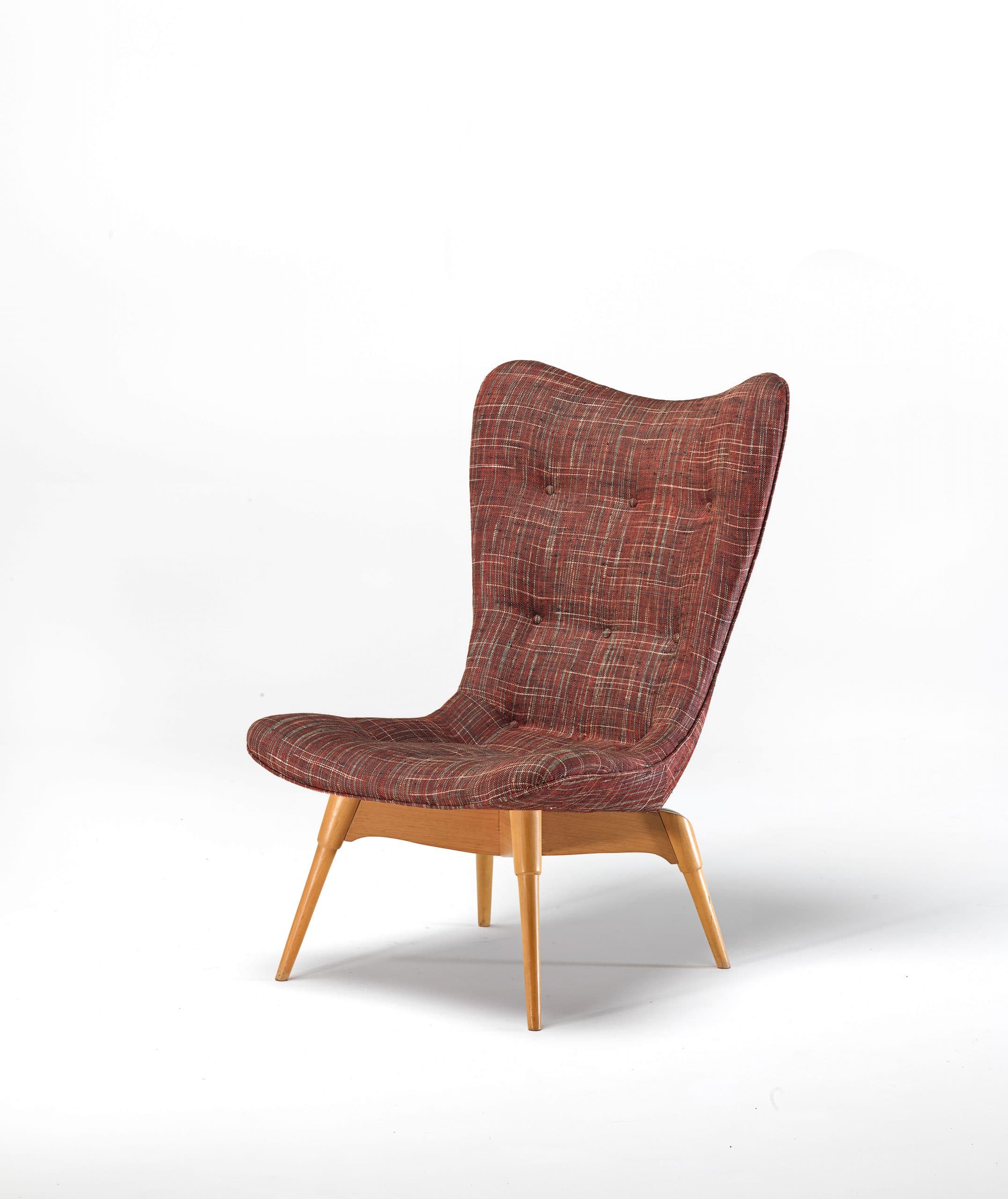 Grant Featherston (designer and maker), R152 Contour chair (1950) designed, hardwood, plywood, linen, (other materials), Purchased 1955