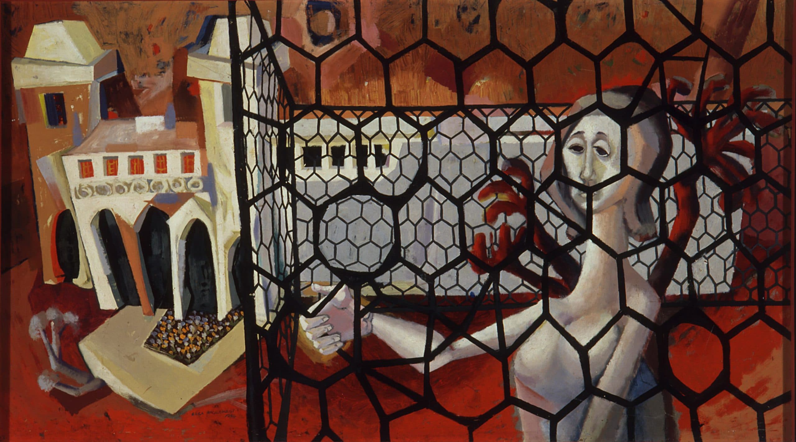 The paintings, works on paper and embroideries assembled for this survey reveal an imaginative and insightful artist. From the time of her first exhibition in 1951 until she ceased making art almost five decades later, McGilchrist’s varied practice has been driven by a clear, singular vision: the reconciliation of her inner and outer worlds. The complex relationship between the self and society provides a thematic link across the artist’s distinct series, which invoke more broadly a range of humanitarian, feminist and environmental concerns.