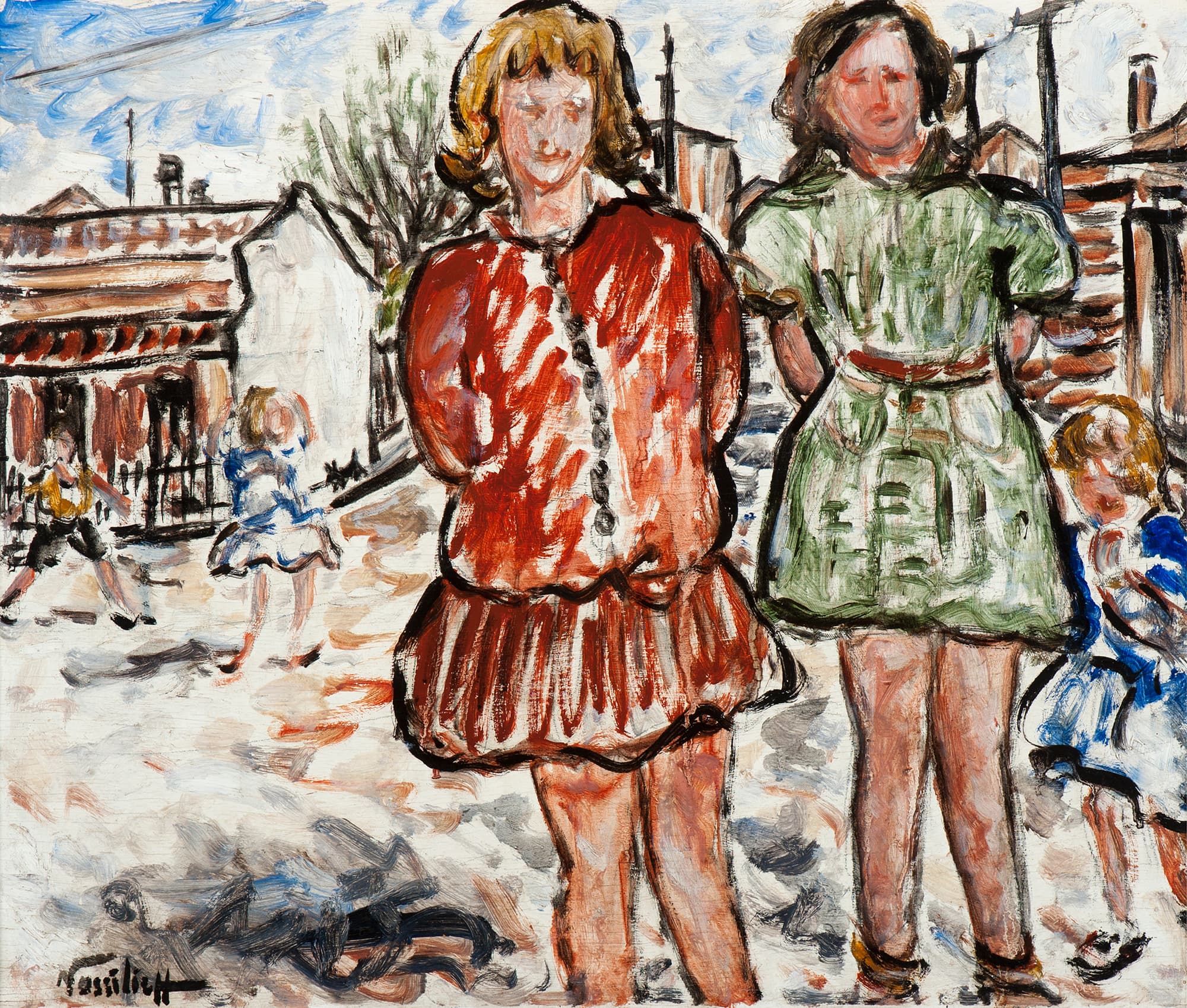 Danila Vassilieff, Valerie and Betty 1937, oil on plywood, 44.9 x 53.5 cm, Purchased from John and Sunday Reed 1980