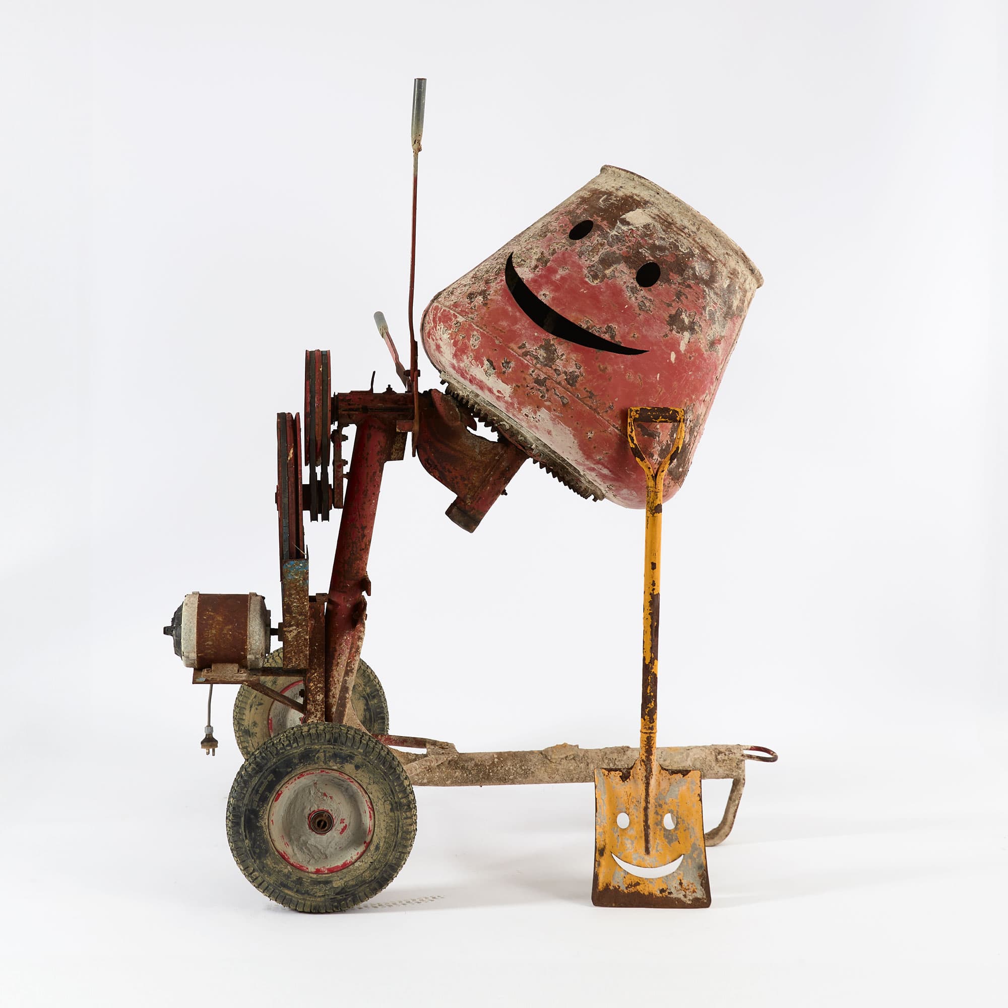 Nell, Meeting the Day (outside) 2025, cement mixer, courtesy of the artist and STATION, Australia; Nell, dig me now, plant me later #1 2025, steel shovel, courtesy of the artist and STATION, Australia