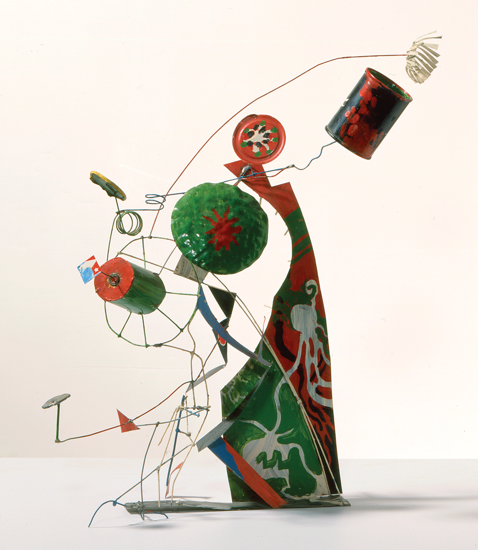Several artists the Reeds collected combined aspects of both painting and sculpture in a single work. Mike Brown, Ross Crothall and Colin Lanceley, who together called themselves the Imitation Realists, painted their sculptures and made wall-based reliefs by applying collage or adding sculptural elements to an otherwise flat surface. They used discarded household items like kitchen scales, tin cans or egg cartons, as a way of connecting art to everyday experience. Artists such as Col Jordan and John Krzywokulski, influenced by 1960s hard-edge abstraction, or Ken Reinhard, an exponent of Pop art, made unconventionally shaped paintings that have a bold, sculptural dimension.