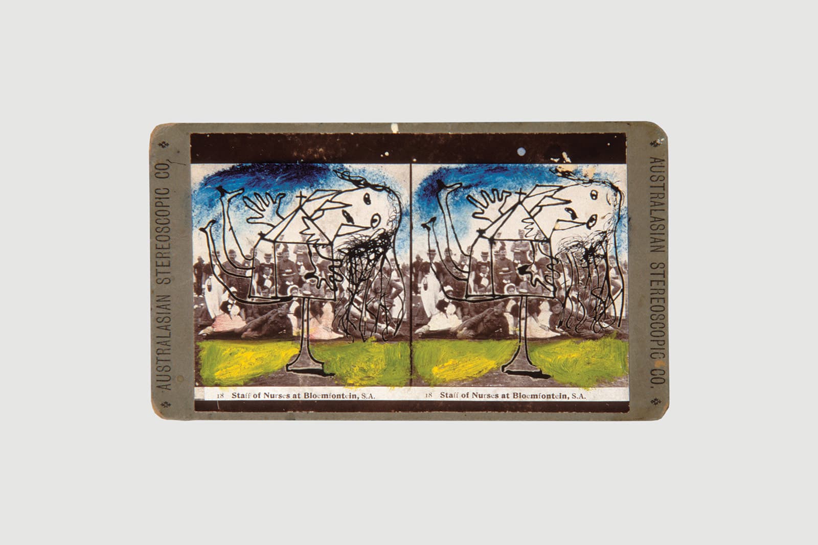 In the late 1930s and early 1940s Heide, the home of progressive Melbourne art benefactors John and Sunday Reed, was a creative laboratory for the young artist Sidney Nolan. In this conducive, stimulating environment, buoyed by the Reeds’ financial and emotional support, Nolan experimented freely in a conscious attempt to be avant-garde and ‘modern’. His background in the commercial art sector and an admiration for innovative European modernists such as Paul Klee, Joan Miró and Pablo Picasso, had made him highly receptive to the possibilities of new materials, processes and imagery. Working instinctively and prolifically, he trialled a remarkable range of unorthodox media and supports, from industrial gloss paints on roof slates to unadulterated boot polish on card. In tandem he developed an idiosyncratic visual lexicon that was equally outside the mainstream, and, counter to the more common pattern of artistic development, gradually shifted from abstraction to figuration.