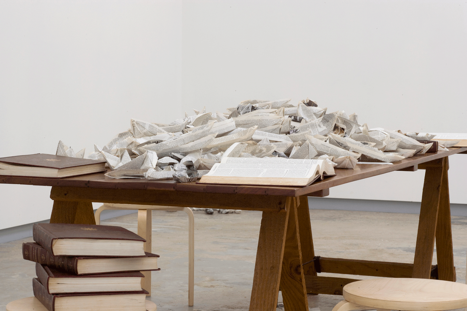 Simryn Gill: Gathering explores these ideas through a selection of works from the past five years. The exhibition includes key photographic series such as May 2006 and Run, and the book-based installations Paper Boats and 32 Volumes, as well as Garland, which is comprised of objects collected from beaches in Malaysia and Singapore over almost a decade. Also featured are two recent works, My Own Private Angkor, a suite of photographs taken in Port Dickson, and Untitled (Interiors), bronze sculptures cast from drought cracks in western New South Wales.