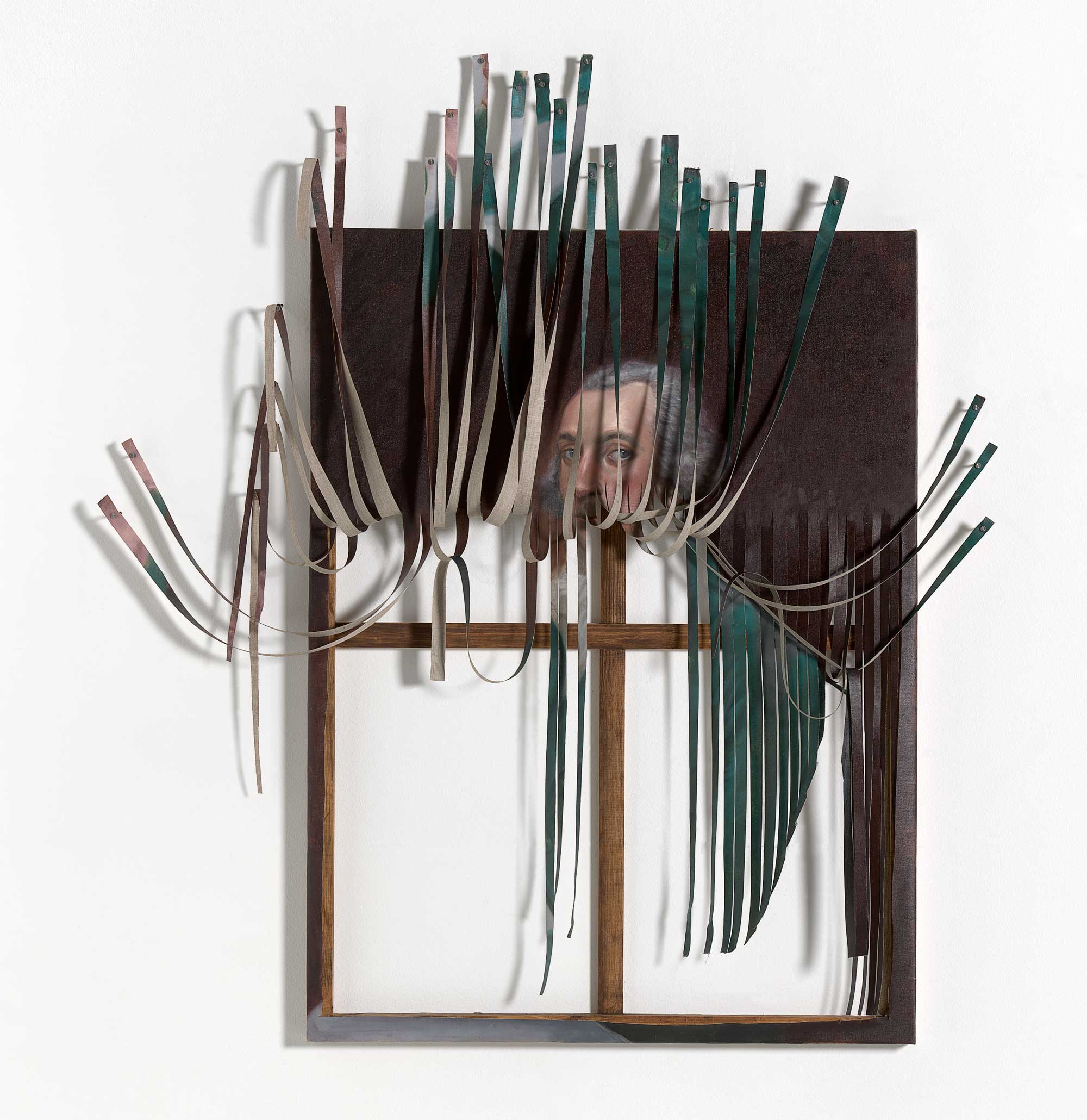 Titus Kaphar, Stripes 2014, oil on canvas and nails, 149.8 x 128.7 x 11 cm (variable) (installed), National Gallery of Victoria, Melbourne, Purchased NGV Foundation, 2015. © Titus Kaphar, courtesy of the artist and Gagosian